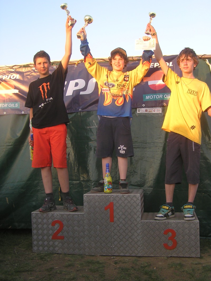 V nasledujúci víkend sme sa už zúčastnili na Medzinárodných majstrovstiev Maďarska v obci ÁCS. Na piesčitej trati sa nám celkom darí, aj preto sme sa chceli porovnať s Maďarskou konkurenciou. U našich susedou je kategória MX85 rozdelená podľa veku(ešte nedávno to fungovalo aj u nás) na jazdcov do 13rokov a do 15rokov. Po daždivej noci trať dostala poriadne zabrať. Na tréningoch to bolo dosť náročné, no v teplom počasí sa to rýchlo zlepšovalo. Nakoniec nám súčte bodov patrilo našej triede prekvapivo 3.miesto. Pevne veríme že sa nám aj naďalej bude tak dobre dariť a naše výkony sa budú len a len zlepšovať.